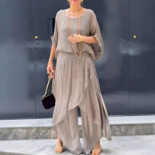 🌹 Løs top og bukser med brede ben Chiffon 2-delt sæt