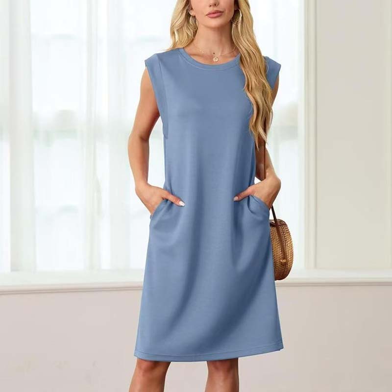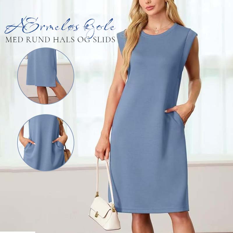 Ærmeløs Kjole Med Rund Hals Og Slids