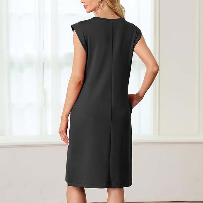- 1 x Ærmeløs Kjole Med Rund Hals Og Slids