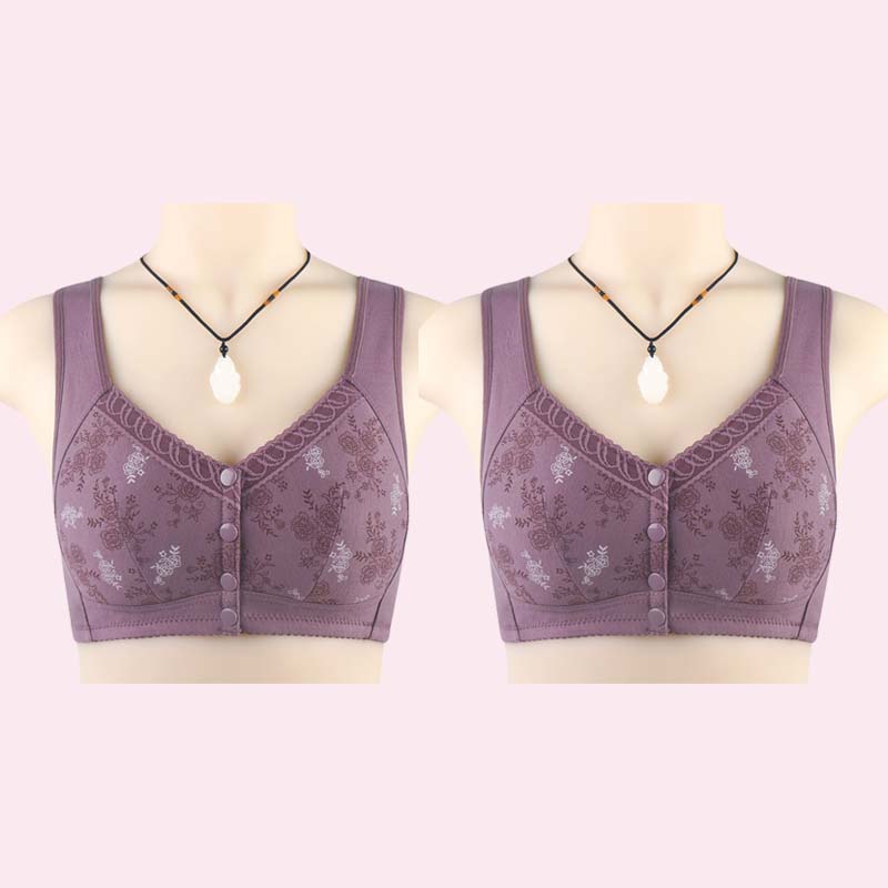 Køb en og få en gratis (2 stk)🎁🌸Blød bomulds-bh med frontprint, stor størrelse, bøjle