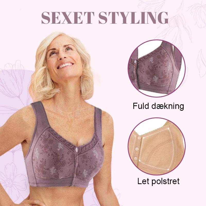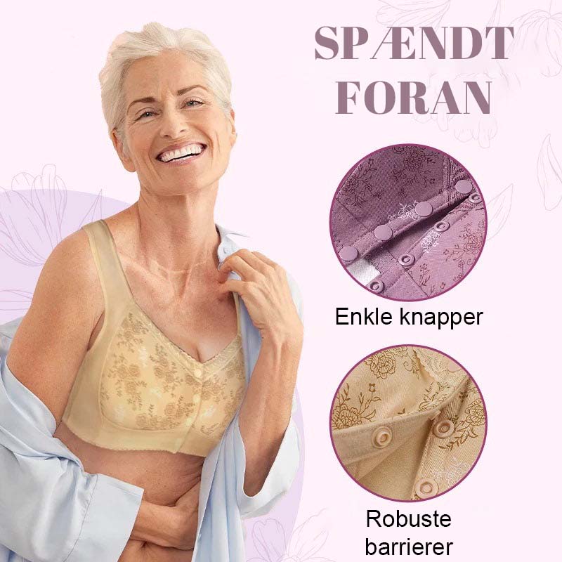 NEM LUKNING FORAN: Det er nemt at tage bh'en af og på takket være den hurtige lukning foran. Du behøver ikke længere at kæmpe med bh'ens bagerste krog.