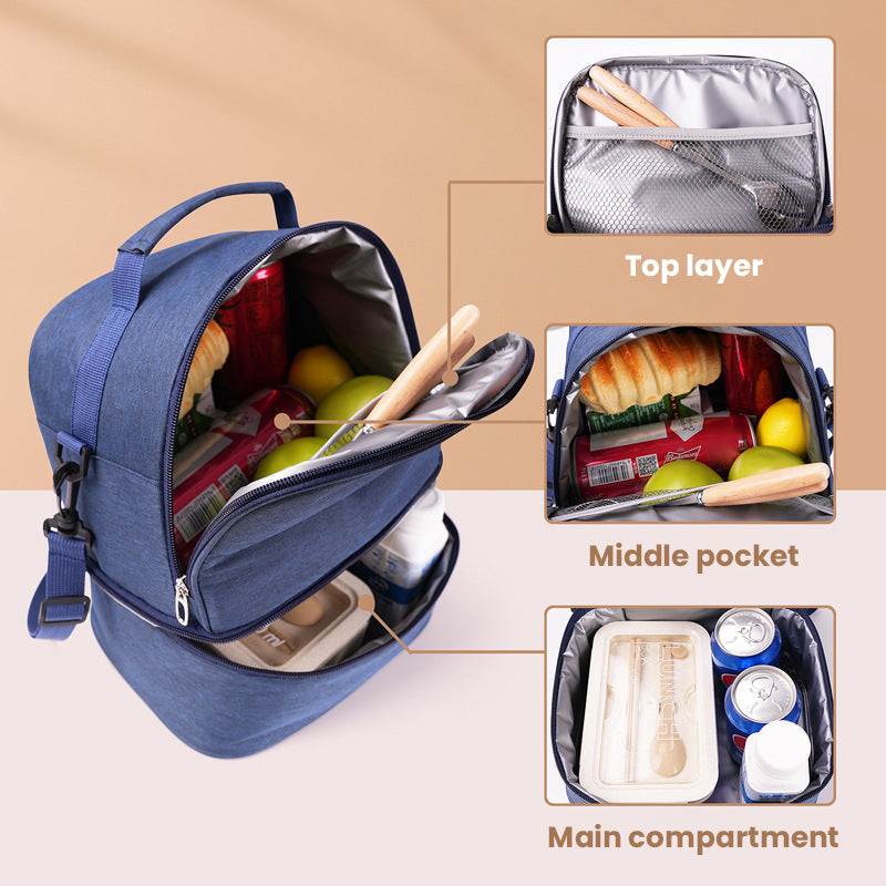 Det helt nye, forbedrede design med flere rum giver mulighed for nem kategorisering! Med opbevaringslag i toppen, midten og bunden kan du opbevare forskellige ting efter behov. Mad, drikke og bestik er pænt organiseret og nemt at bære.