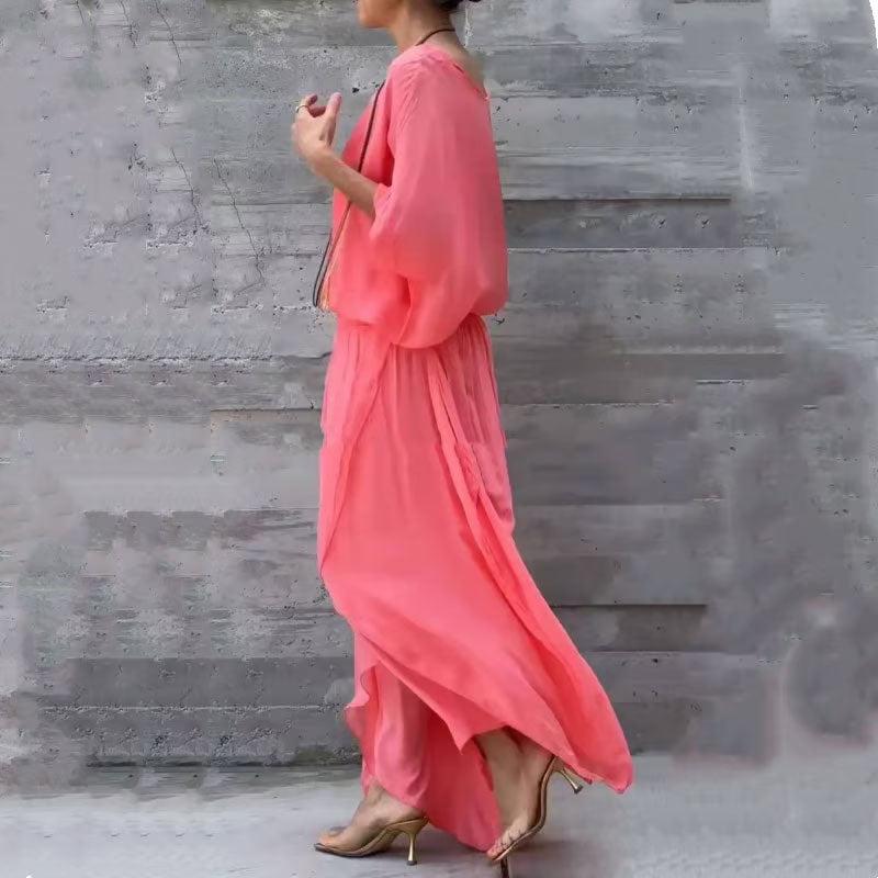 🌹 Løs top og bukser med brede ben Chiffon 2-delt sæt